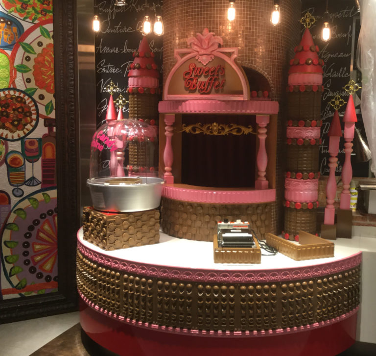 Buffet Peintureさんの店舗内ディスプレイのデザインをさせていただきました。 既存タイル柱の周りに …
